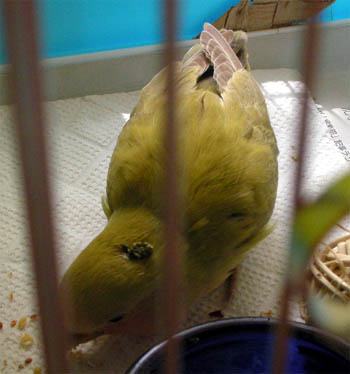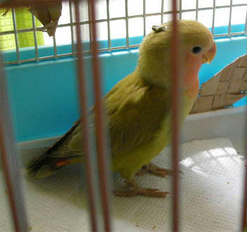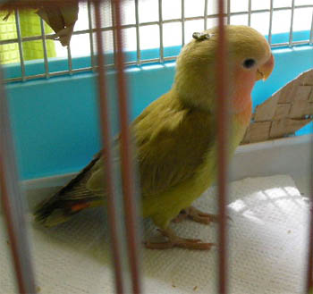 ケージの底も羽と粉だらけ。