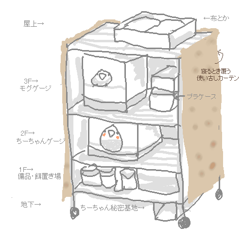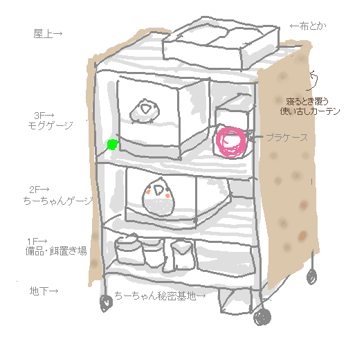 モグケージの横のプラケース置き場に急遽モモちゃんケースを