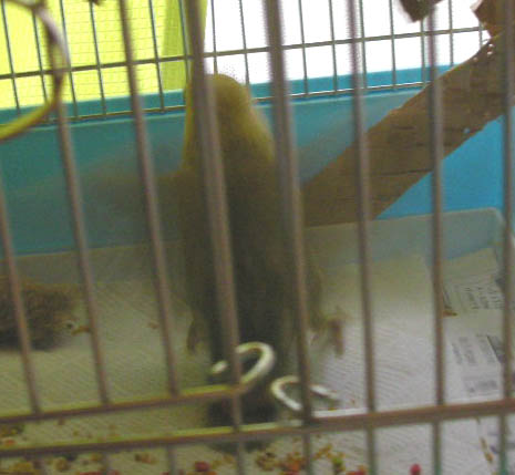 ●にあるケースから飛び出したモモちゃんは、モグのケージをぐるっと回って