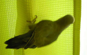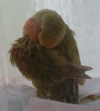 この子ときたら揺れる電車の中でも羽繕いしてるし、まいてある