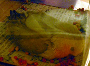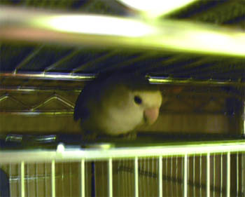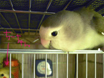 放鳥時、モグがモモちゃんの入ってる虫かごを発見。