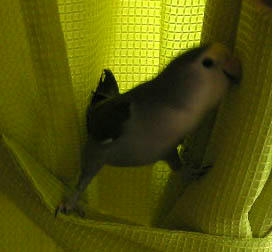 ちーちゃんが新しいインコ棚の下にやたら潜っているので