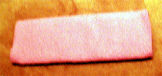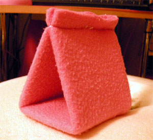 折り目に合わせて折り曲げて天辺を縫う。