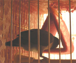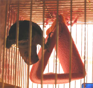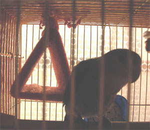 ちーちゃんのゲージの入り口でかわいこぶってるモグですが・・・。