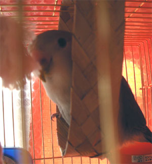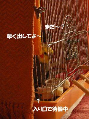 モグは放鳥するとすぐにちーちゃんのゲージに行って悪戯をするので