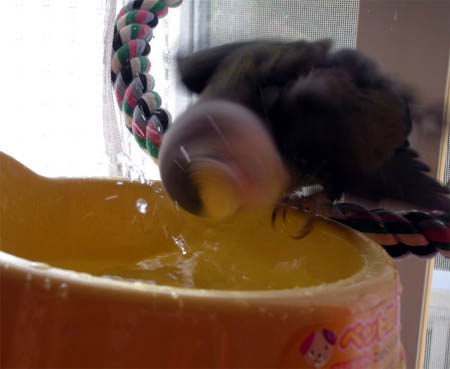 試しに容器を見せると、すんなり水を浴び始めました(・∀・)